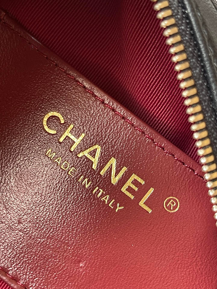 CAMERA BAG 18 IN BLACK QUILTED LAMBSKIN DOUBLE C GOLD COIN
