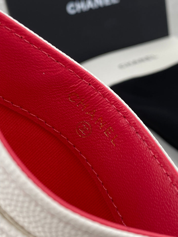 CC CARD HOLDER 19.5 WHITE GRAINED CALFSKIN GOLD ICON