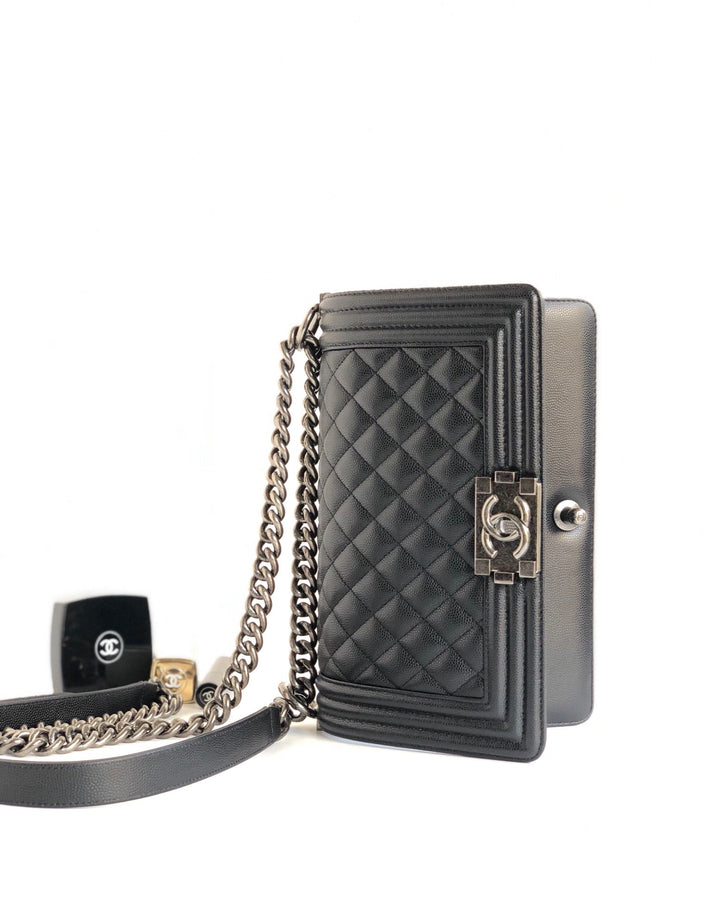 CC MEDIUM 25 BOY BAG IN BLACK LAMBSKIN SILVER HARDWARE