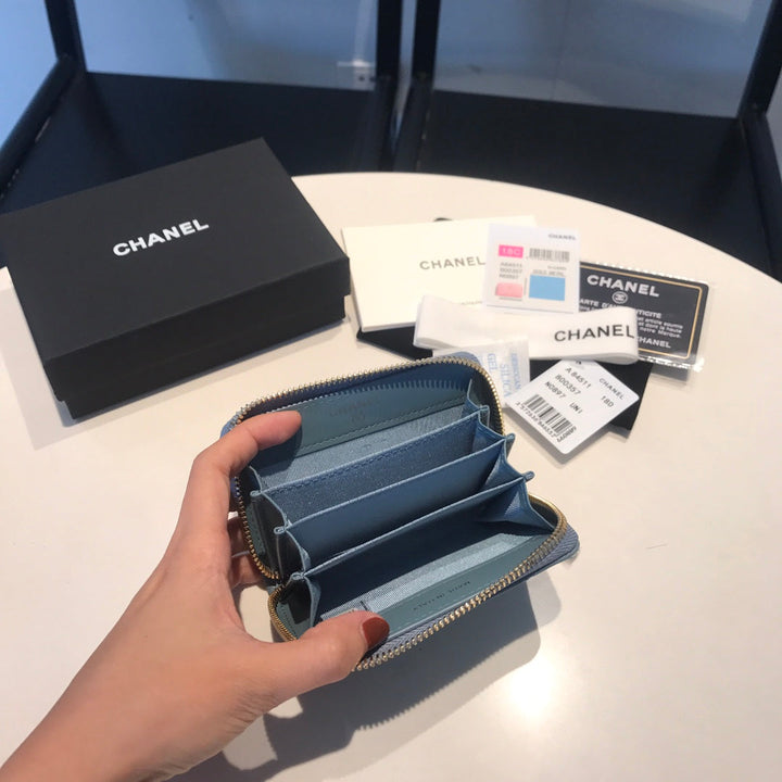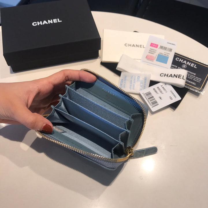 CC ZIPPED CAVIAR PURSE 11 SAPPHIRE CALFSKIN GOLD ICON
