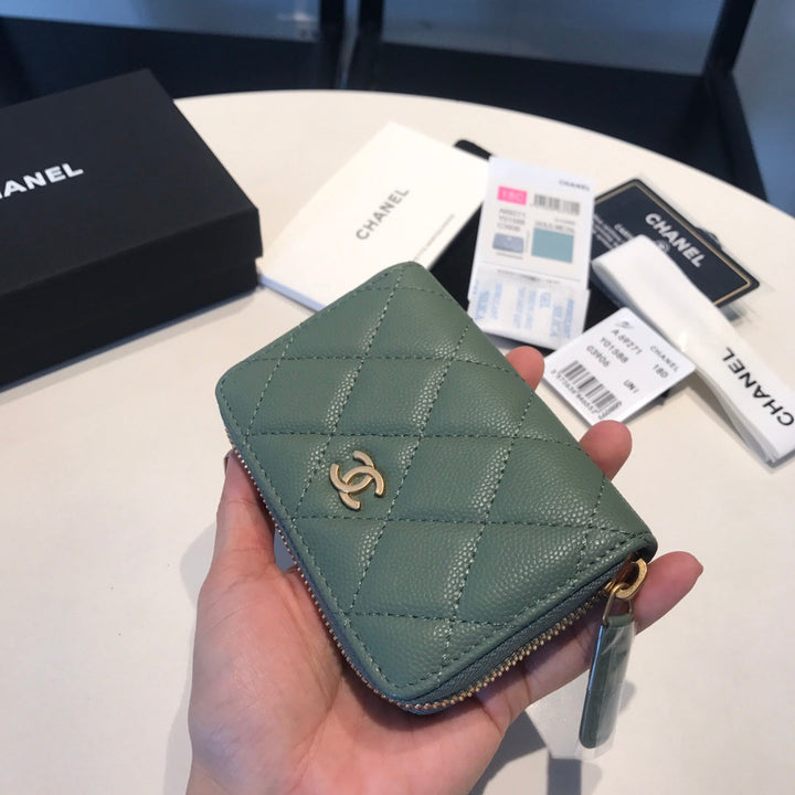 CC ZIPPED COIN BASIC PURSE 11 TURQUOISE CALFSKIN GOLD ICON