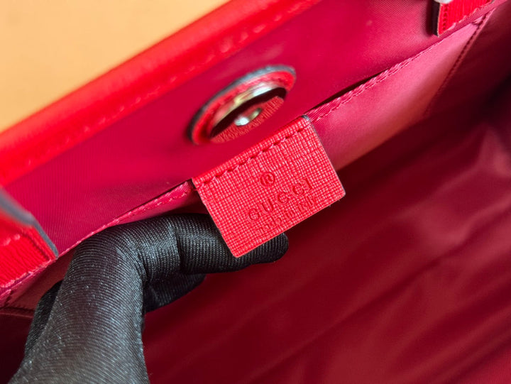 CHILDREN'S PRINTED RABBIT TOTE BAG 28.5 IN BEIGE AND DARK BROWN GG CANVAS RED TRIM