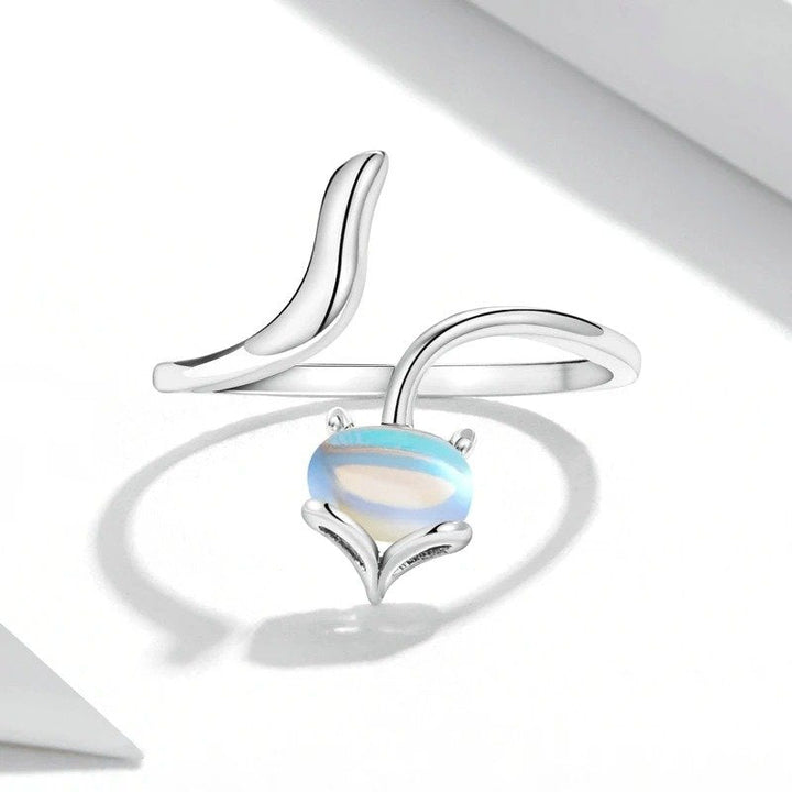 ? [Description] This fox-shaped ring is unique. Use moonstone to create the fox's head, and use the metal lines to outline the fox's tail.
