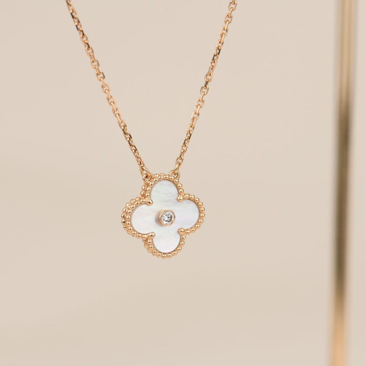 ˇShiny JewelryˇCLOVER 15MM DIAMOND WHITE FRITILLARIA NECKLACE